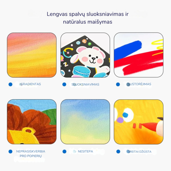 - Vieno markerio dydis: 13,5 cm x 1,1 cm x 1,1 cm