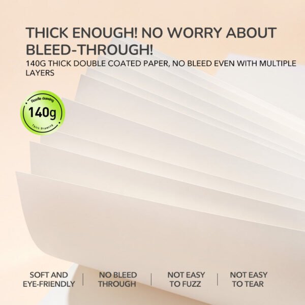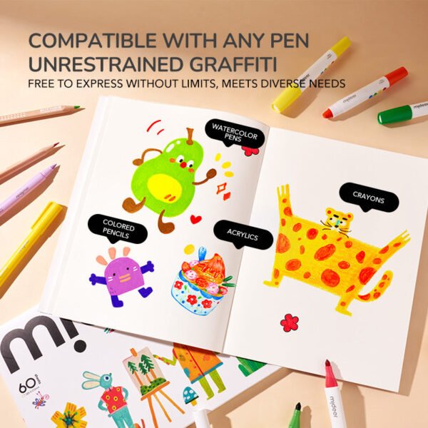 60 popieriaus lapų, kiekvieną lapą galima lengvai nuplėšti, norint eksponuoti ar pasidalinti savo kūriniu. Tvirtas kartoninis viršelis suteikia lygų ir patikimą paviršių piešimui, nesvarbu, ar esate namuose, parke ar keliaujate. Nesvarbu, ar eskizuojate, spalvinate ar tapote, Mideer eskizų knyga yra puikus jūsų meno palydovas!