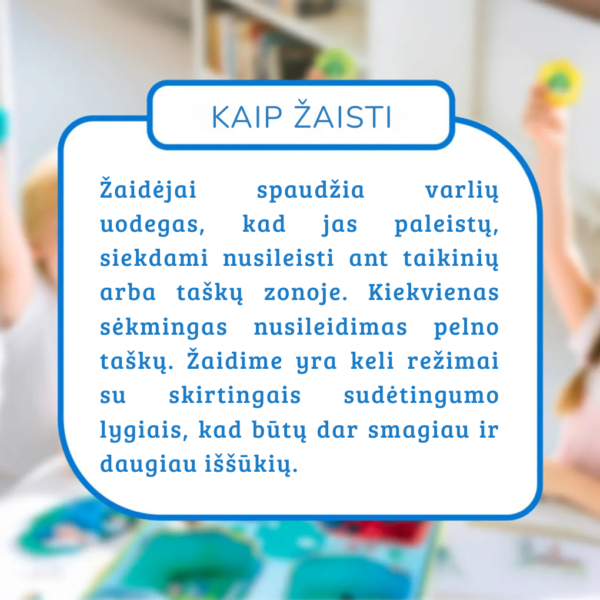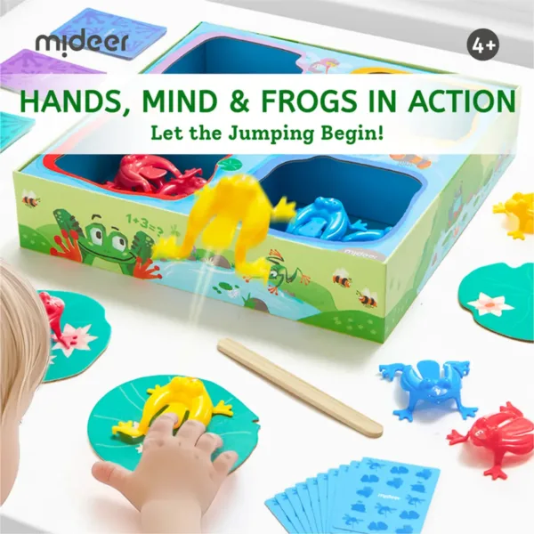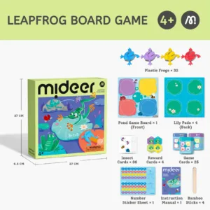 Pasiruoškite šuoliui į veiksmą su interaktyviu Mideer stalo žaidimu „Varlės Šoklės“! Šis linsmas edukacinis žaidimas sujungia linksmybes, strategiją ir įgūdžių lavinimą – vaikai spaudžia varlių uodegas, kad šios šoktų į taikinius ir taškų zonas. Kiekvienas sėkmingas šuolis atneša taškų ir draugišką varžybų džiaugsmą.