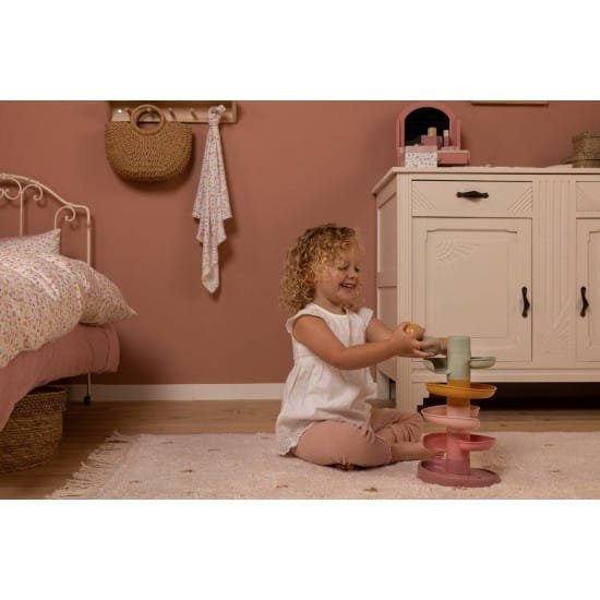 Spiralinis bokštas suteiks daug džiaugsmo. Bokštas susideda iš penkių atspalvių dalių, iš kurių jūsų mažylis gali lengvai sustatyti bokštą. Padėkite kamuoliukus po vieną ant viršutinio laiptelio ir pažiūrėkite, kaip jie rieda žemyn. Spiralinis bokštas yra lavinantis, gerina rankų ir akių koordinaciją. Spiraliniame bokšte yra trys dideli spalvoti, lengvai paimami rutuliai.