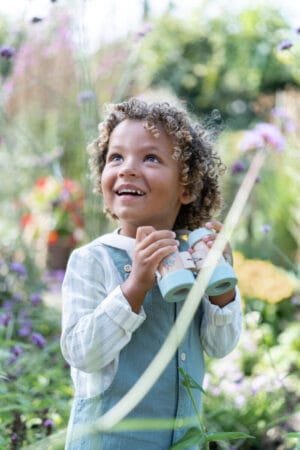 Tyrinėkite gamtą su šiais mediniais žiūronais! Šie žiūronai, papuošti gražiomis spalvomis ir iliustracijomis bet kokius nuotykius paverčia jaudinančiais. Žiūronai padidina ir yra reguliuojami pagal atstumą tarp jūsų akių, kad matytumėte optimalų vaizdą. Medvilninis laidas su Velcro užsegimu užtikrina, kad žiūronai saugiai kabėtų ant kaklo. Idealiai tinka smalsiems tyrinėtojams, norintiems tyrinėti juos supantį pasaulį!