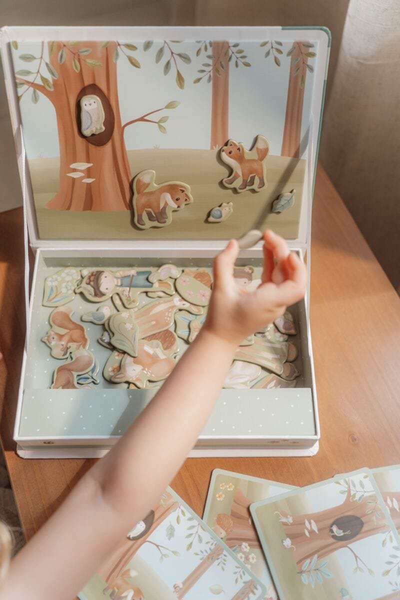 Tyrinėkite užburto miško stebuklus su šia magnetine žaidimų lenta! Atskleiskite viduje slypinčią magiją, kai atkartojate pateiktas korteles, įdėdami magnetus į reikiamas vietas. Arba paleisk savo vaizduotę ir sukurk savo nuotykius miške. Naudojant magnetinę žaidimų lentą, sukurti savo unikalią istoriją lengva. Puikiai tinka kūrybiškumui sužadinti ir taip pat puiki dovana! ĮSPĖJIMAS: Netinka vaikams iki 3 metų dėl smulkių dalių. Užspringimo pavojus.