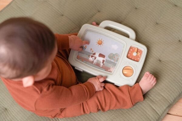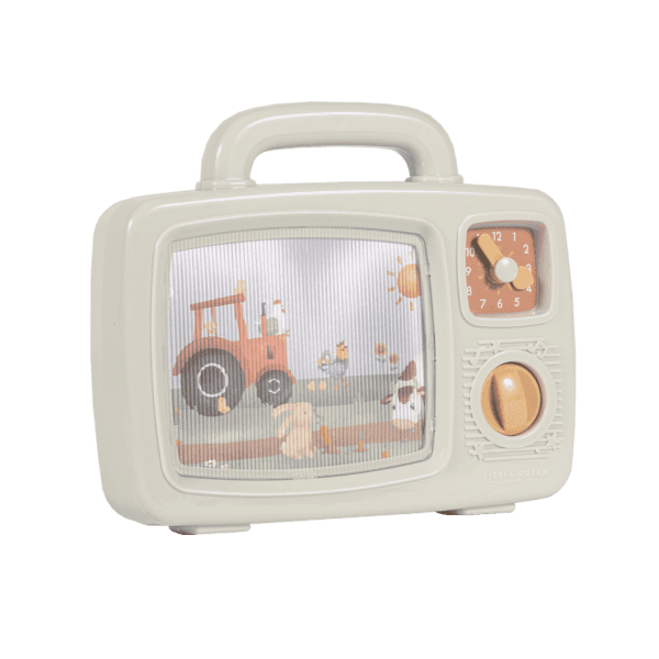 Pasukite šio mielo Little Dutch Music TV rankenėlę ir vaizdas lėtai pasikeis, kol girdėsite linksmą muziką. Tinka vaikams nuo 12 mėnesių ir vyresniems.