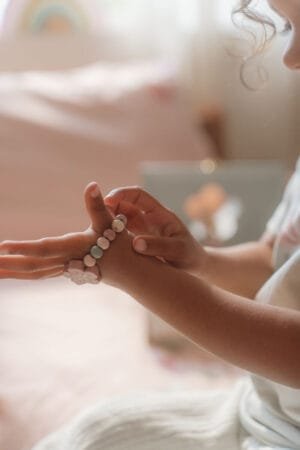 Papildykite savo dienos išvaizdą šiuo mielu medinių papuošalų rinkiniu. Rinkinyje yra gražių švelnių spalvų ir unikalių gėlių iliustracijų. Dėl švelnių spalvų jis tinka beveik prie bet kokios aprangos! Su kaklo papuošalu, apyranke, žiedu ir plaukų elastinėmis juostelėmis Jūsų mažylis atrodys itin žavingai.