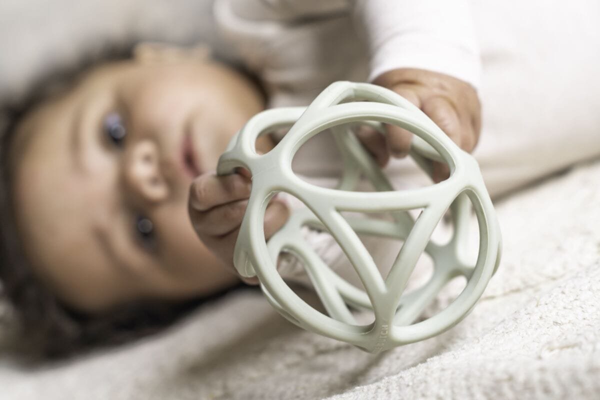 Minkštas sensorinis žaidimo kamuolys. Šis kamuolys yra minkštas ir lankstus. Žaidžiant kamuoliukas stimuliuoja jūsų kūdikio pojūčius, jį čiupinėdamas, suspausdamas, čiulpdamas ir ridendamas. Šis kūdikių žaislas skatina jūsų kūdikio smalsumą ir skatina kūrybiškumą.
