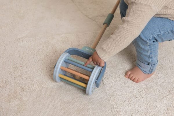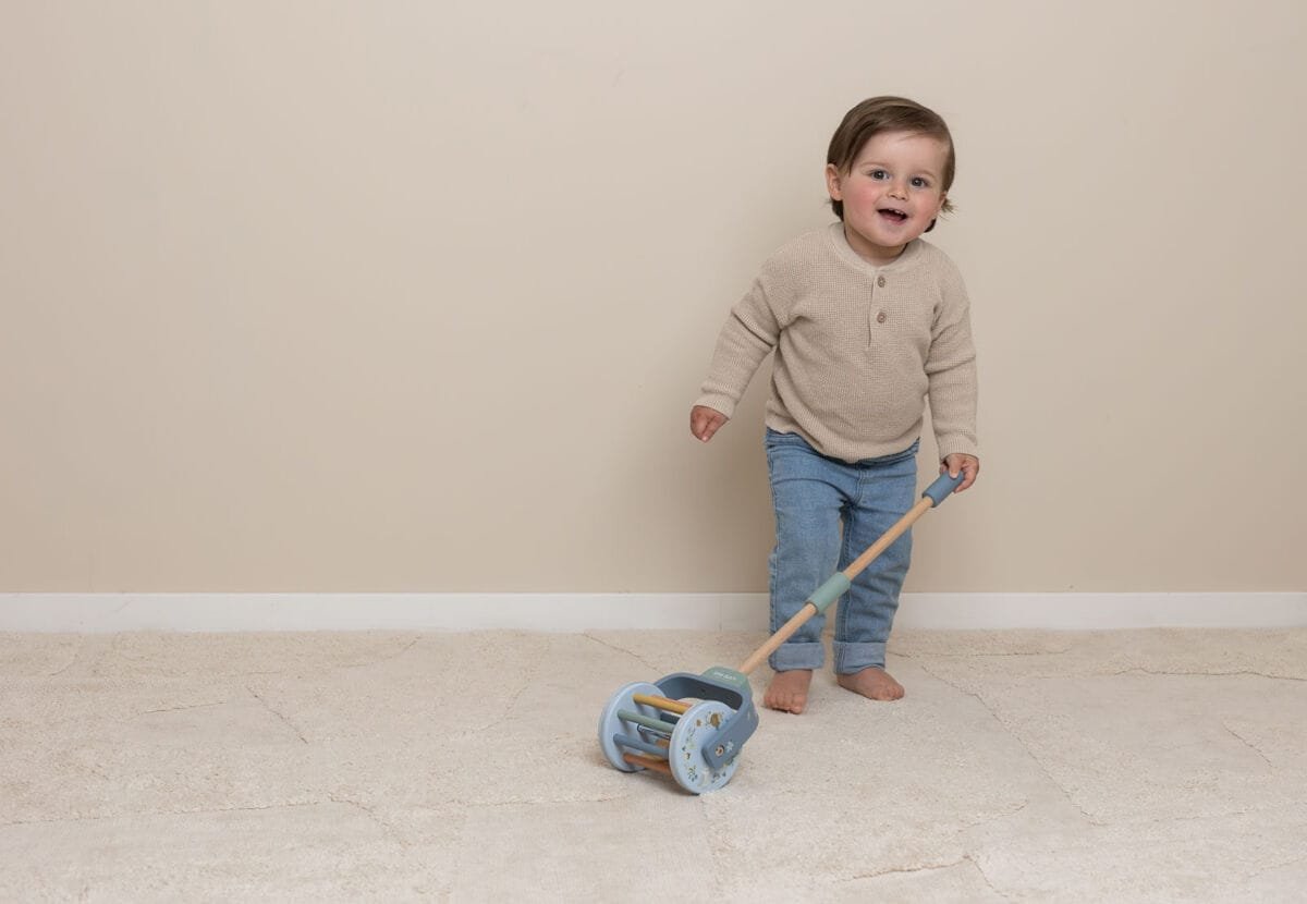 Su kiekvienu žingsniu ir posūkiu barškučio viduje esantys rutuliukai skleidžia linksmą žvangėjimą. Leiskitės į nuotykius po namus ir įsivaizduokite, kad tyrinėjate užburtą mišką, kuriame gyvena ir žaidžia patys mieliausi pūkuoti draugai. Šis stumiamas barškutis paskatins jūsų mažylį vaikščioti ir padės lavinti motorinius įgūdžius. Pagaminta iš patvarios medienos su guminiais ratukais, kad galėtumėte žaisti begalę valandų.