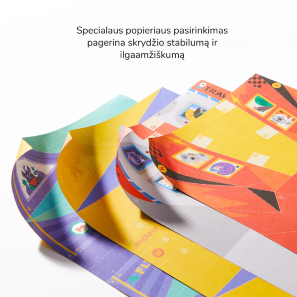 Popieriaus rankdarbių rinkinių seriją sudaro keturios temos: lėktuvai, lenktyniniai automobiliai, laiveliai ir vėjo malūnai, suteikiančios vaikams mokslinį pažinimą per origami ir padedančios lavinti smegenis. Remdamiesi tradiciniu origami, mes įvedame naujoves ir gyvybingumą, leisdami vaikams lenktyniauti, skraidyti, pajusti vėjo jėgą ir patirti jūrinį tyrinėjimą realiame gyvenime. Tikimės, kad labai interaktyvi origami patirtis paskatins vaikų vaizduotę, lavins jų praktinius įgūdžius ir sužadins jų susidomėjimą mokslu. Rinkiniui nereikia žirklių ar klijų, jį lengva naudoti.